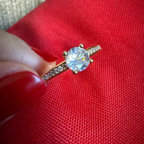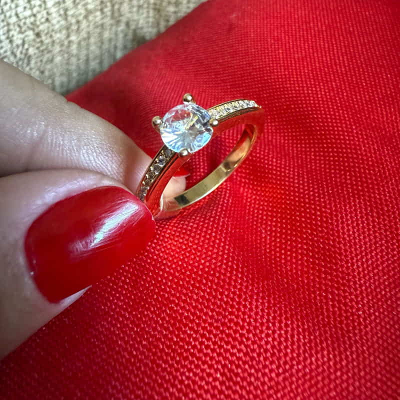 💍 ANEL SOLITÁRIO COM CRAVAÇÃO LATERAL – BANHO DE OURO 18K 💍