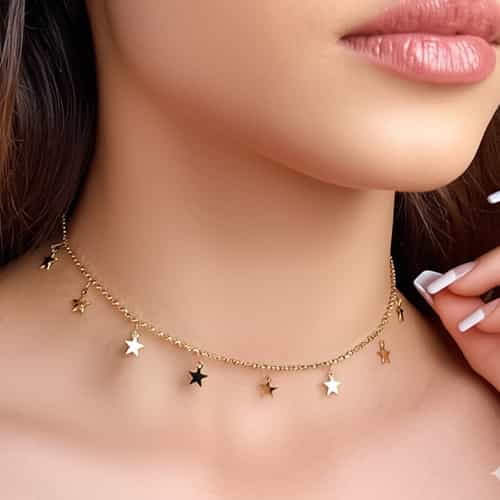 Pensada para o conforto, esta choker é hipoalergênica, sendo uma ótima opção para peles sensíveis, garantindo que você possa usá-la por longas horas sem desconforto. Seu design leve e versátil a torna ideal para combinar com outras joias ou usar sozinha como protagonista do seu estilo. A Choker Estrelinhas é a escolha certa para quem busca um acessório encantador e cheio de personalidade.