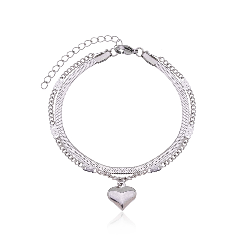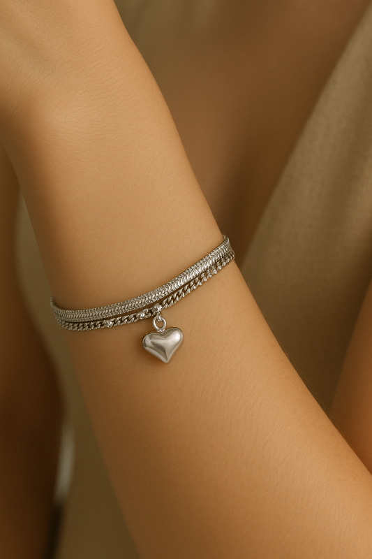 PULSEIRA DUPLA FITA E CORACAO EM AÇO INOXIDÁVEL